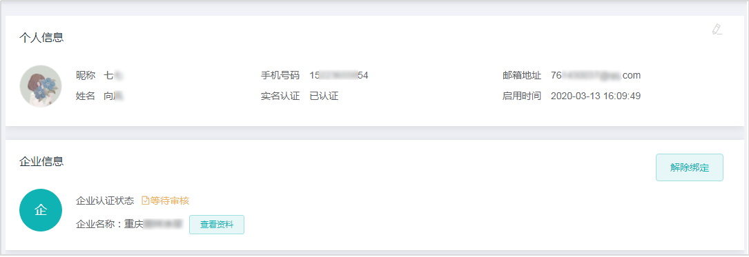 2、企业信息由平台进行审核,审核通过后,企业认证成功。