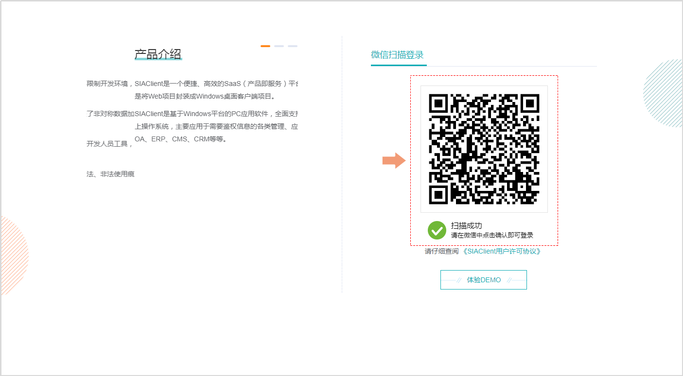 1、进入siaclient桌面应用生成平台,使用微信账号进行登录,无需填写注册信息即可登录siaclient官方服务平台。